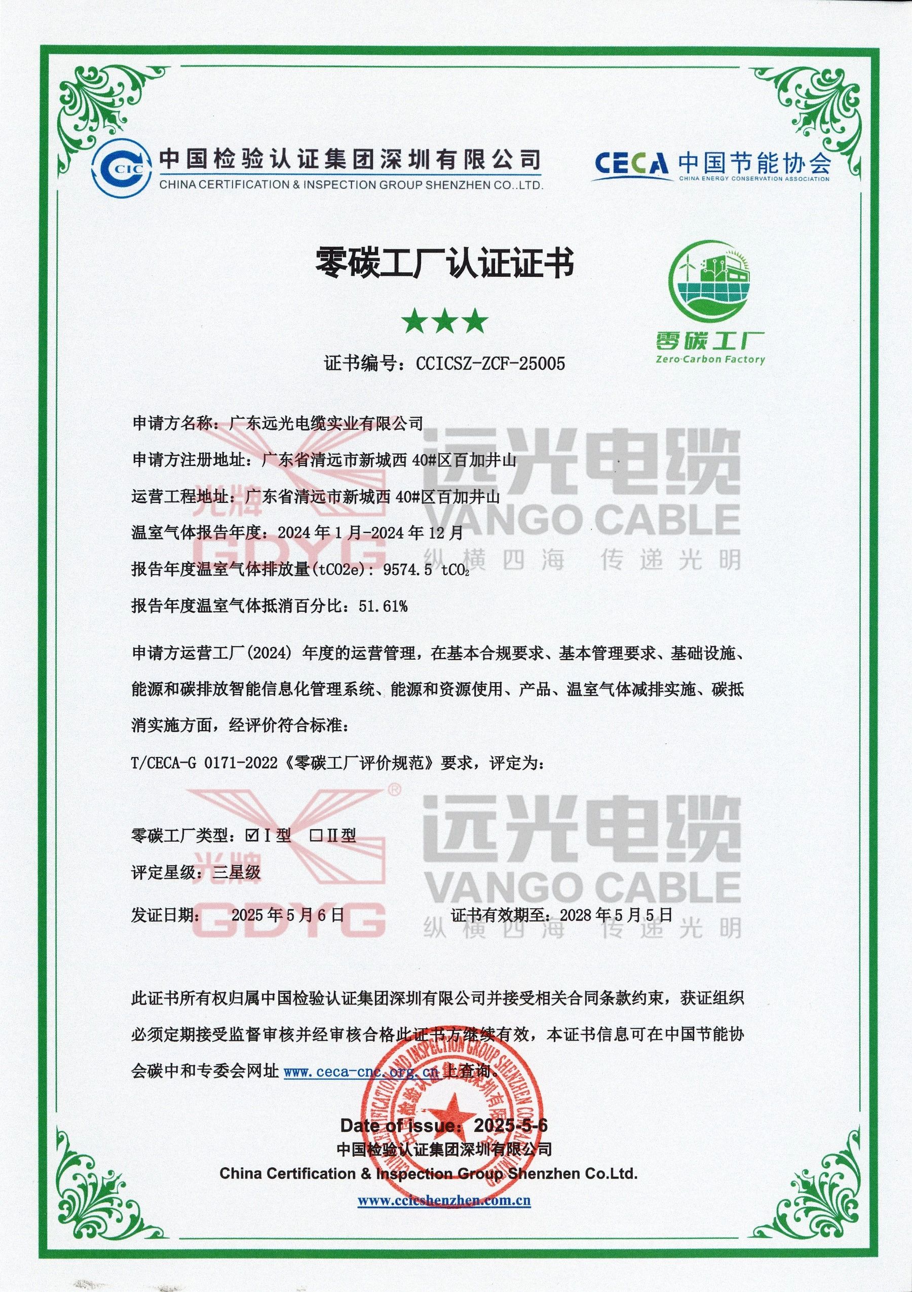 近日,廣東遠(yuǎn)光電纜實業(yè)有限公司正式通過中國節(jié)能協(xié)會與中國檢驗認(rèn)證集團(tuán)深圳有限公司的聯(lián)合評審,獲頒“Ⅰ型三星”零碳工廠認(rèn)證證書。作為電線電纜行業(yè)的綠色先鋒,遠(yuǎn)光電纜積極響應(yīng)國家“碳達(dá)峰、碳中和”戰(zhàn)略部署,將可持續(xù)發(fā)展理念深度融入生產(chǎn)運營。繼獲評“國家級綠色供應(yīng)鏈管理企業(yè)”“廣東省省級綠色工廠”后,此次通過零碳工廠認(rèn)證標(biāo)志著遠(yuǎn)光在綠色制造、低碳轉(zhuǎn)型領(lǐng)域取得里程碑式突破,為全行業(yè)綠色發(fā)展樹立嶄新標(biāo)桿。