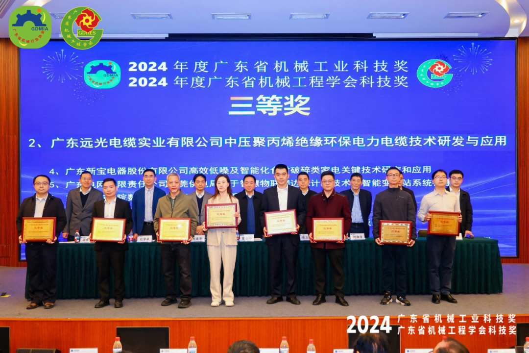 廣東省機械工業(yè)科學技術(shù)獎作為省內(nèi)機械制造領(lǐng)域最高科技榮譽之一,遠光電纜憑借在綠色能源與材料創(chuàng)新領(lǐng)域的突出表現(xiàn)獲得2項獎項!其中,“高導耐熱鋁合金導線關(guān)鍵技術(shù)研究及應用”項目榮獲一等獎,“中壓聚丙烯絕緣環(huán)保電力電纜技術(shù)研發(fā)與應用”項目斬獲三等獎。