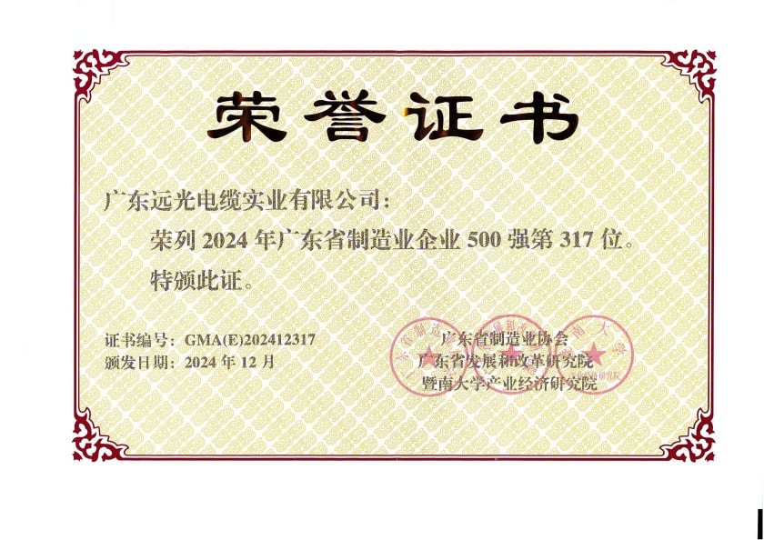 廣東遠(yuǎn)光電纜實(shí)業(yè)有限公司入選